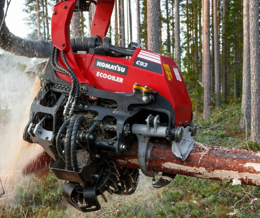 Řezná hlava Komatsu C93 je silná a výkonná, univerzální pro prořezávání. Díky zavedeným technickým řešením poskytuje další výhody. Vylepšený řezací systém Constant Cut inteligentně řídí motor pily a zajišťuje konstantní a efektivní rychlost motoru pily během celého řezacího cyklu. To zase zajišťuje hladké řezání a omezuje problémy s praskáním. Mazací systém Eco-GLS (volitelně) snižuje spotřebu maziva a paliva, eliminuje olejovou mlhu a minimalizuje dopad na životní prostředí. Údržba hlavy je bezpečná a jednoduchá a její konstrukce usnadňuje přístup k ventilu a hlavním mazacím bodům.